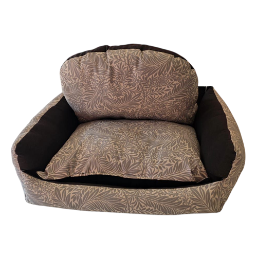 Brinda a tu mascota el descanso que se merece con esta acogedora cama. Diseñada con un elegante estampado de hojas en tonos neutros y detalles en color oscuro que aportan contraste y estilo, esta cama combina perfectamente con cualquier decoración del hogar. Su base acolchada y respaldo alto ofrecen soporte y comodidad, mientras que los bordes elevados crean una sensación de refugio y seguridad. Ideal para perros y gatos de tamaño pequeño a mediano.